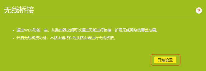 进入无线桥接设置向导后,点击“开始设置”。如下: