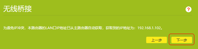 主路由会给副路由器分配一个IP地址,点击“下一步”,如下图: