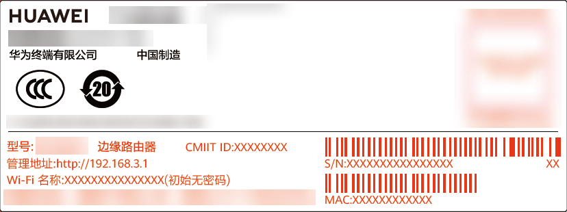 可通过智慧生活 App 和 Web 管理界面查看路由器的 IP 地址、MAC 地址、S/N 号(序列号)等设备信息。 通过查阅设备铭牌获取序列号(S/N 号) S/N 号即产品