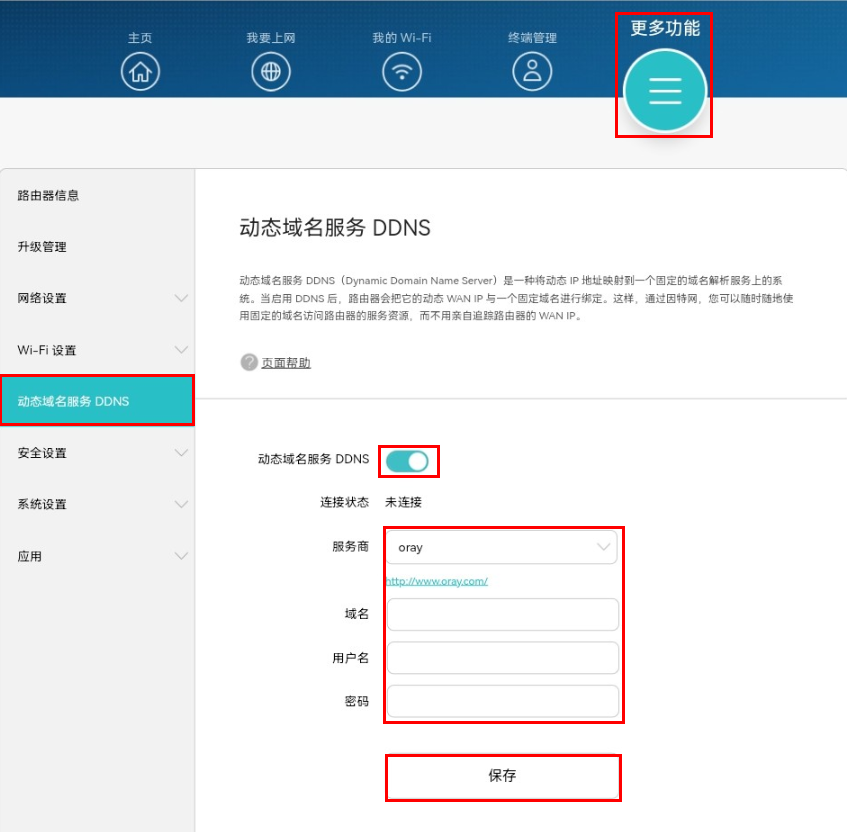 动态域名服务 DDNS(Dynamic Domain Name Server)是一种将动态 IP 地址映射到一个固定的域名解析服务上的系统。当启用 DDNS 后,路由器会把它的动态 WA