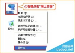 1.右键点击桌面上的“网上邻居”,选择“属性