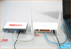电话线接入的用户:电话线接到猫上面,猫分出来的线接路由器的WAN口(蓝色接口),再找一根短网线,一头接我们路由器的1234任意接口(黄色接口),一头接电脑;