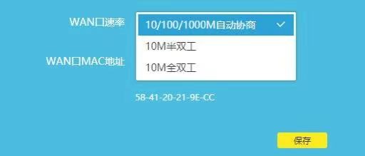路由器默认的WAN口速率模式为自动协商,如果手动修改路由器WAN口速率为10M,则在大于10Mbps的宽带线路上测速,会影响测速结果。因此,请确保路由器WAN口速率为自协商模式。